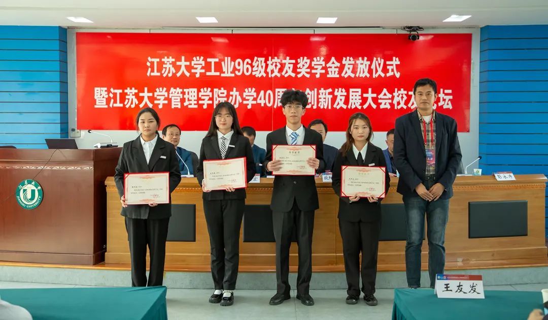 当日下午还举办了校友论坛,校友们就学习党的二十大精神体会、老龄健康应对策略、大学生就业前景与职业生涯规划等作了分享交流。论坛上还举行了工业96级校友奖学金发放仪式。